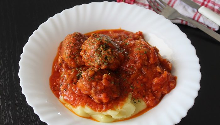 Ja sam poslužila uz krompir pire (obarila krompire pa izblendala sa maslinovim uljem i vegetom), a umesto krompir pirea možete iskoristiti šinat, tjesteninu ili prilog po želji.